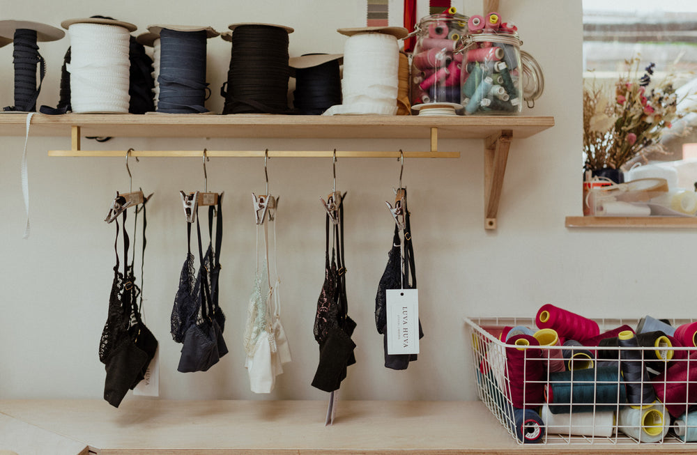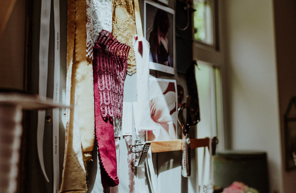 Our signature lace comes from three main sources. Our lace from Germany is made without the use of harmful substances. The polyester lace is made from recycled materials. We also work with surplus (deadstock) laces from French Maisons de Couture.