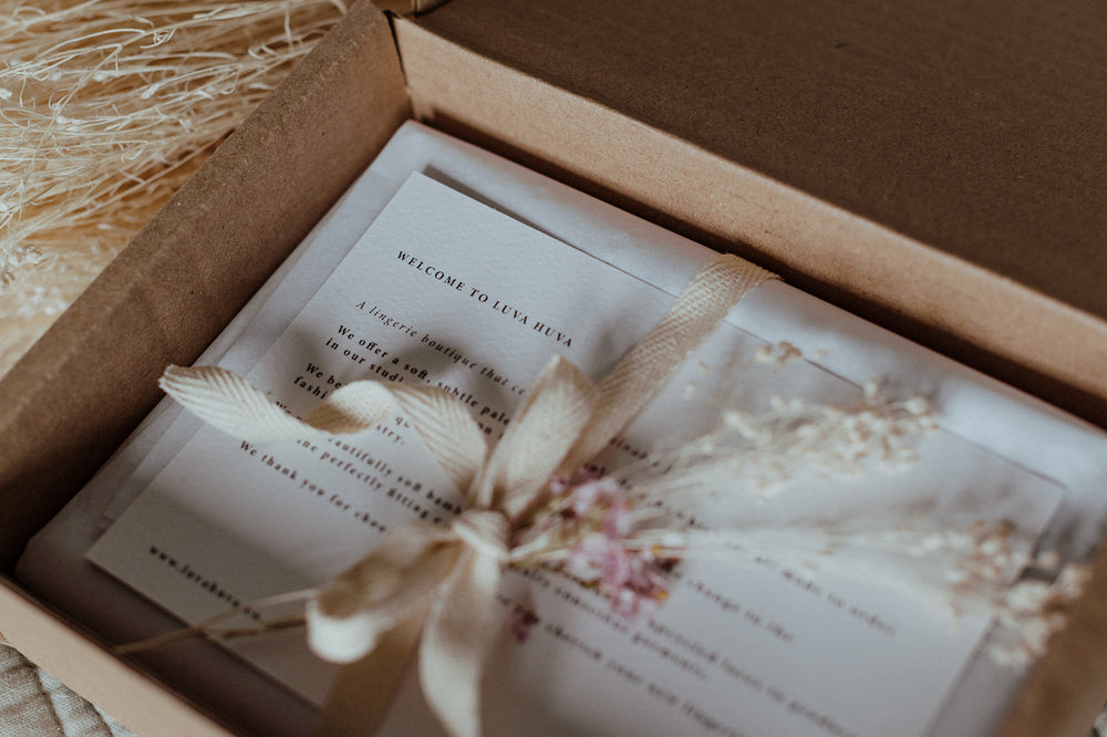Your experience with Luva Huva should feel special. We carefully package and present your orders to delight you when they cross your door. You’ll find recycled tissue paper, natural jute ribbon and a personal handwritten note. All plastic free and recyclable yet sturdy. We spread the word by asking our suppliers to limit their use of plastic packaging when they send things to us.